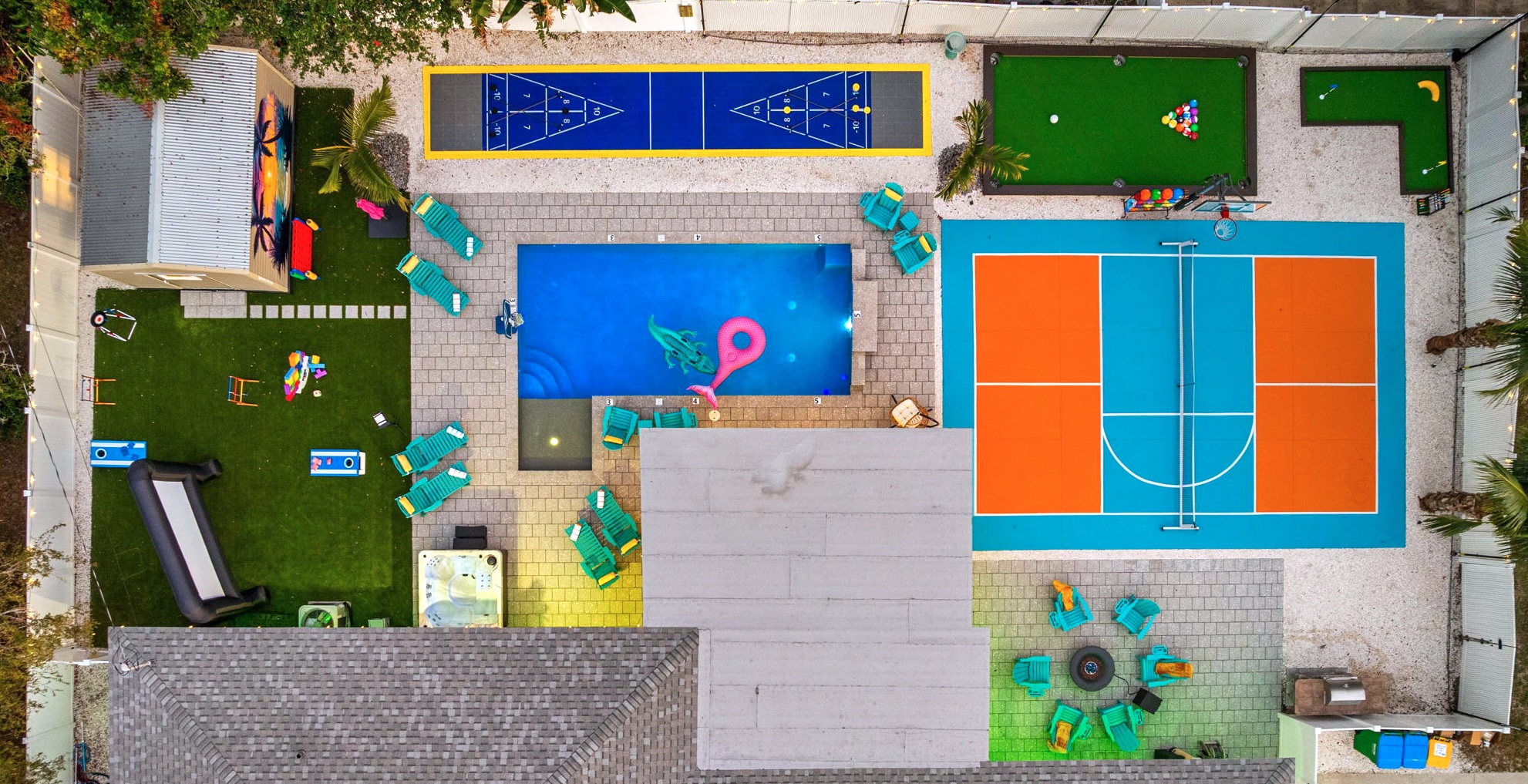 We had an amazing stay at Bungalow 727! It was clean, well-designed, and perfect for our group. The backyard amenities are incredible — pool, hot tub, pickleball and basketball courts, mini putt-putt, soccer billiards, and tons of fun yard games. The game room with skee-ball (ski-ball?), shuffleboard, and arcade games was a huge hit too.